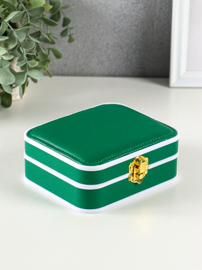 Шкатулка для украшений Giulia, пластик, кожзам, 6 ячеек, 10 полос, зелёная, 13.5×11.5×5.5 см