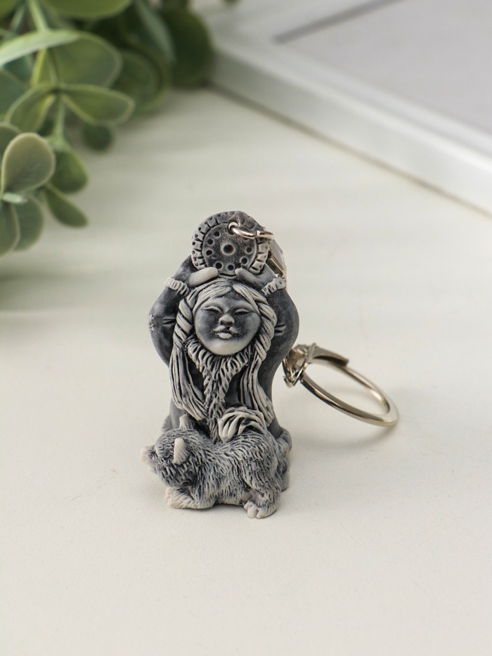 Брелок для ключей на кольце «Девочка со щенком и бубном маленькая», 4.8 см