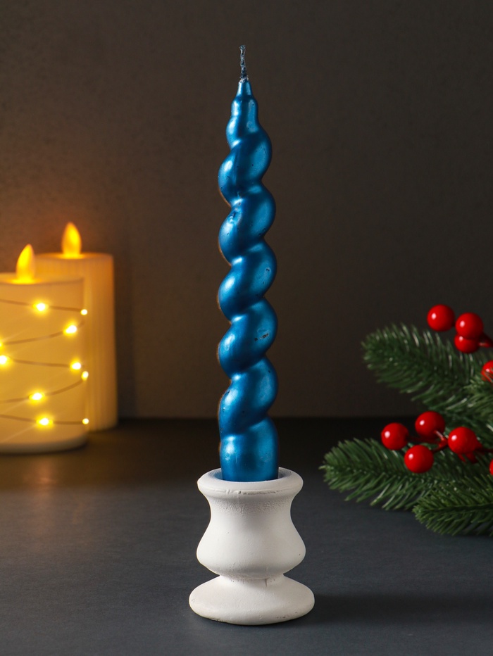 Свеча витая "LUXURY" 25*180 мм, лакированная, синяя