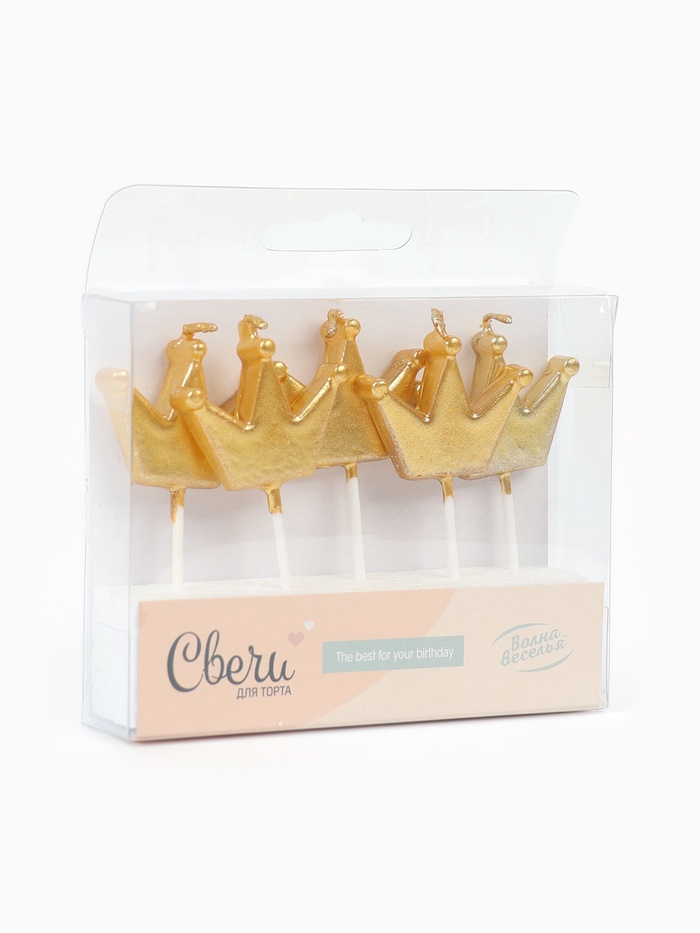 Свечи в торт "Фигура "Короны" Золото, Металлик, 3,5*2,5 + 5 см, 5 шт. с держат.