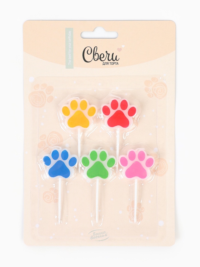 Свечи в торт "Фигура, Лапки" Ассорти, 2,5 см, 5 шт. с держат.