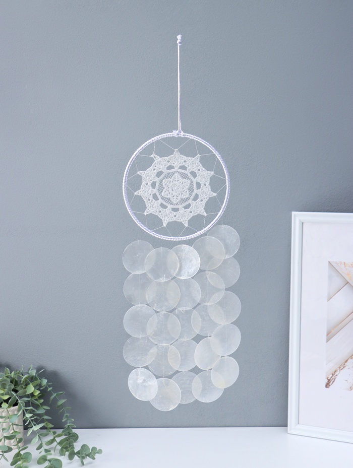 Ловец снов "Паутинка с бусинками" перламутр 12 кружков d=4,8 см 11,5х39,5 см