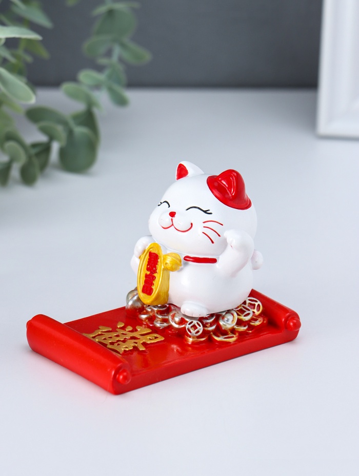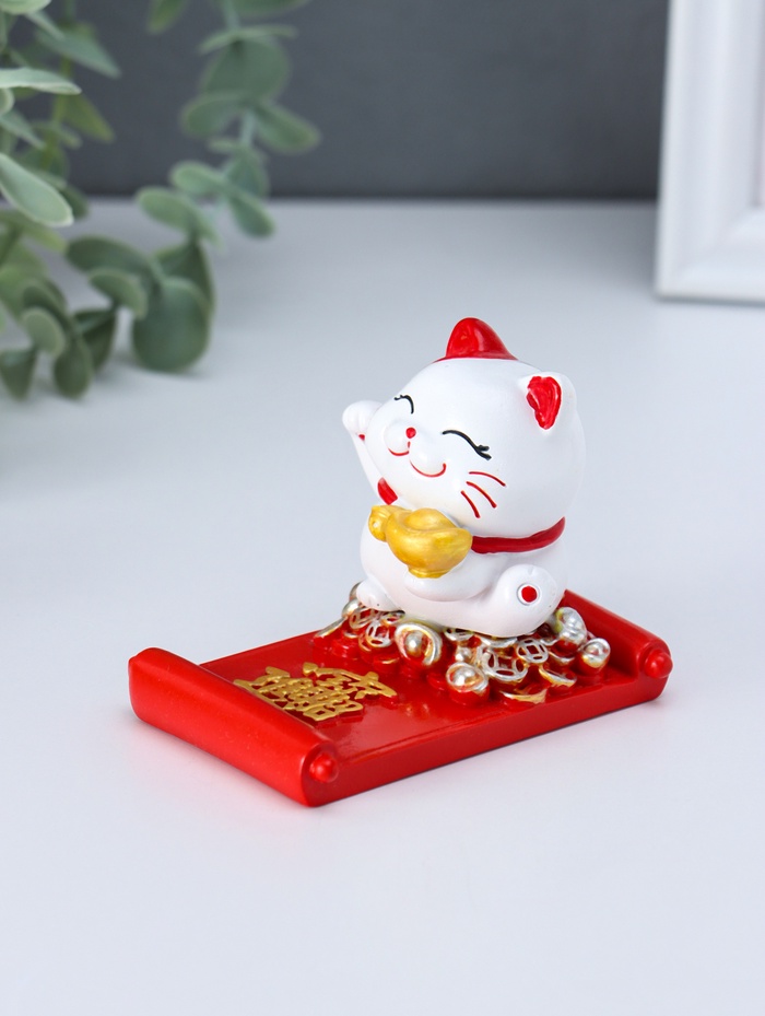 Сувенир полистоун подставка под телефон "Манэки-нэко с золотым слитком" 5,8х8,5х6,5 см