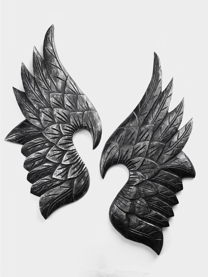Сувенир интерьерный "Крылья" дерево (набор 2 шт), 70 см, цв. серебро