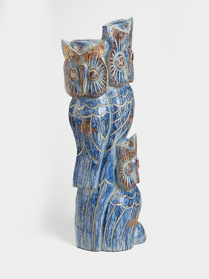 Сувенир интерьерный "Совы на ветке" дерево 20х8х60 см, цв. голубой
