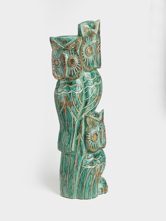 Сувенир интерьерный "Совы на ветке" дерево 20х8х60 см, цв. зелёный