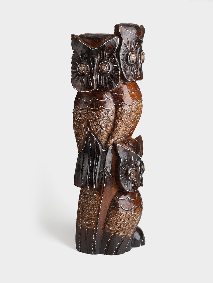 Сувенир интерьерный "Совы на ветке" дерево 20х8х60 см, цв. коричневый