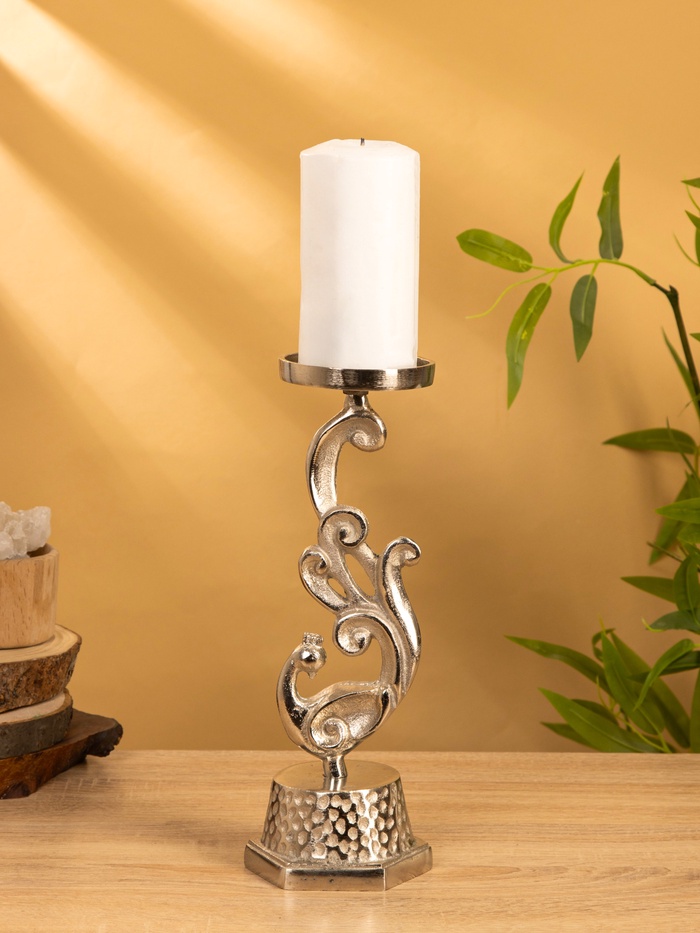 Подсвечник "Жар-птица" 11х11х30 см, алюминий, цв. серебро
