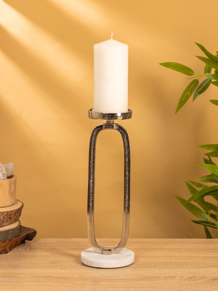 Подсвечник "Эллипс" 9х8,5х24,5 см, d 7,5 см, алюминий, мрамор