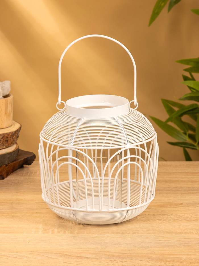 Подсвечник фонарь со стеклянной колбой 19х19х19,5 см, d 8,5 см, металл, цв. Белый