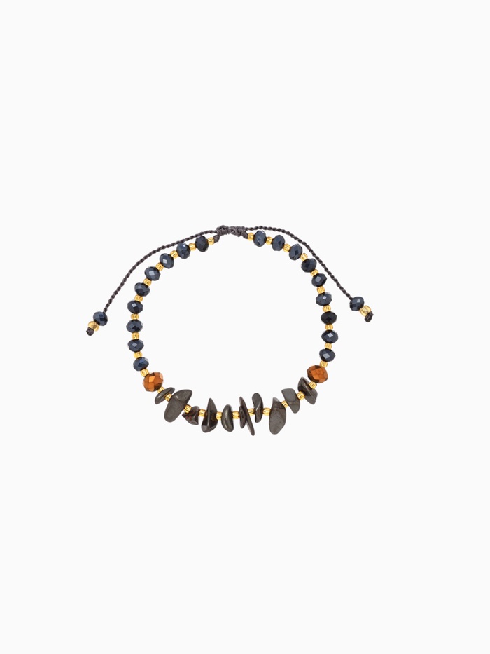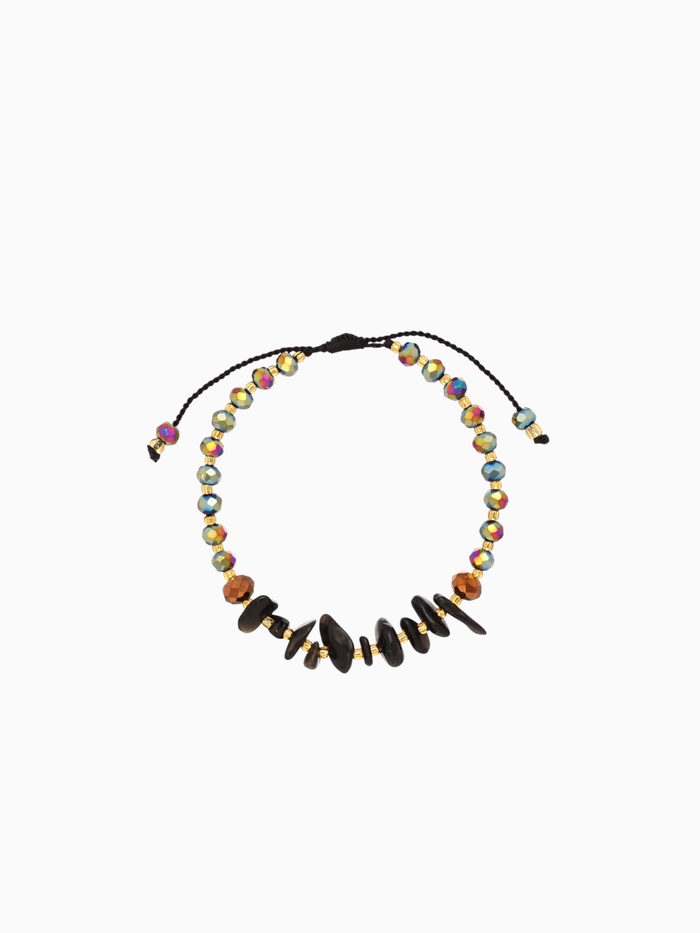 Браслет "Моана" камень пирит, длина 16 см, цв. чёрный