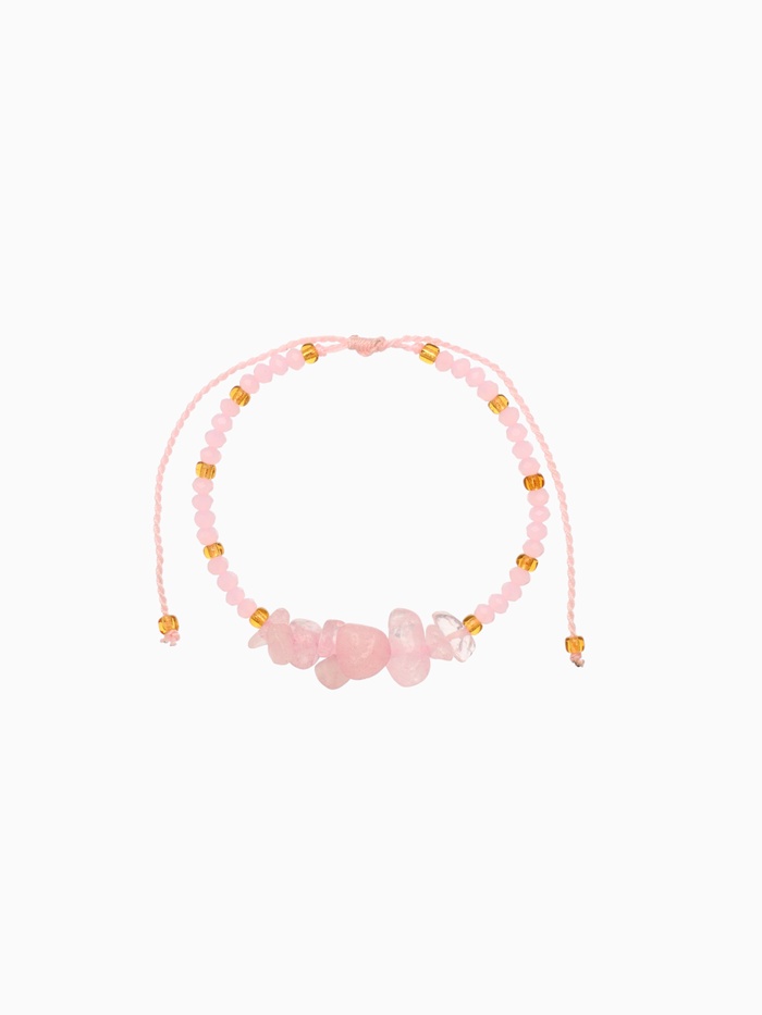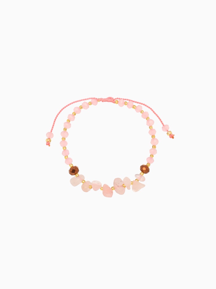 Браслет "Моана" камень пирит, длина 16 см, цв. розовый