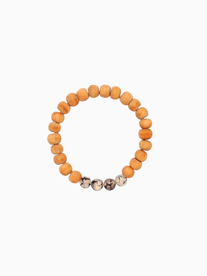 Браслет из сандалового дерева с агатом, длина 18 см, цв. чёрный