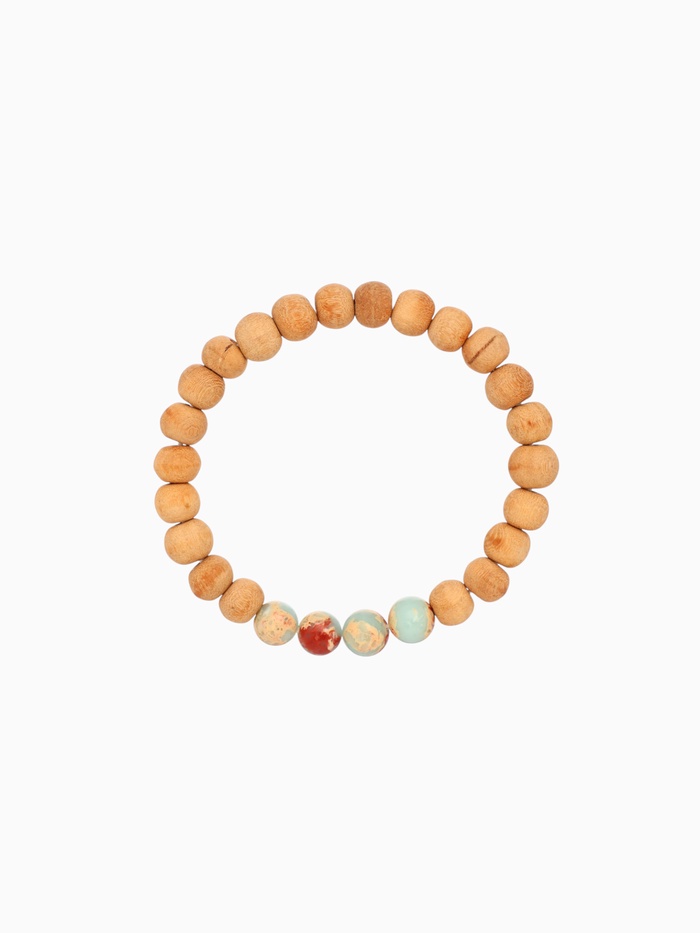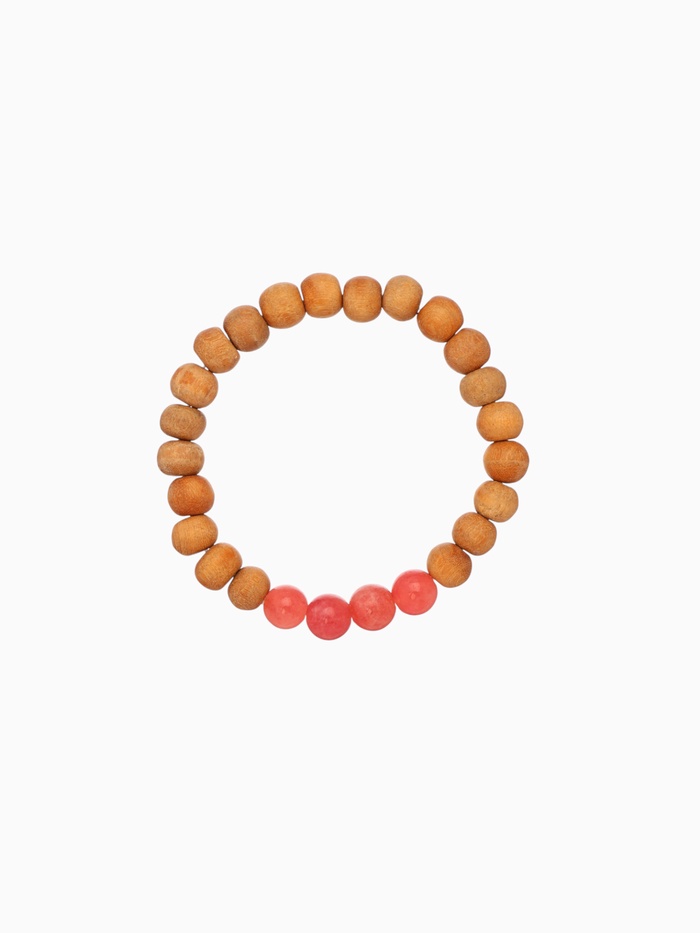 Браслет из сандалового дерева с агатом, длина 18 см, цв. красный