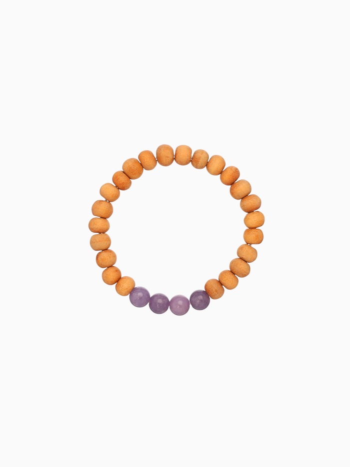 Браслет из сандалового дерева с агатом, длина 18 см, цв. сиреневый