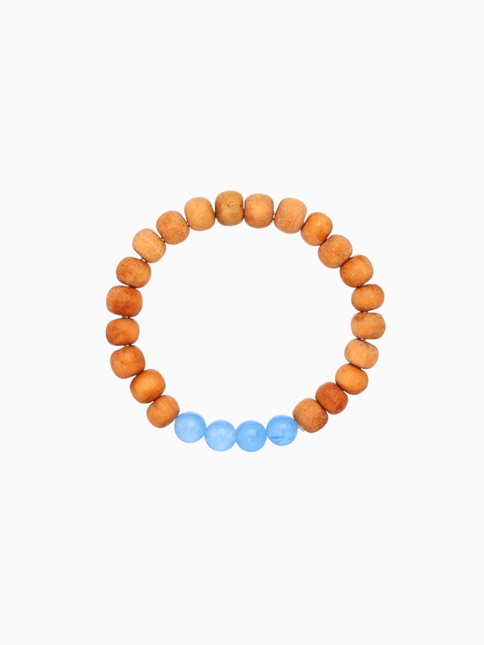 Браслет из сандалового дерева с агатом, длина 18 см, цв. голубой