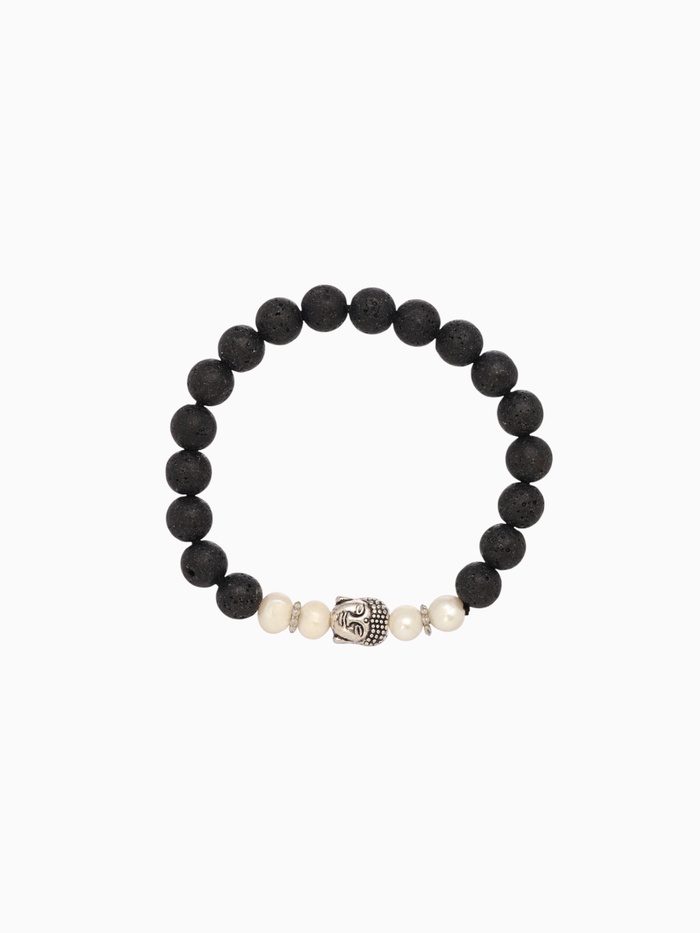 Браслет "Будда" жемчуг, лава, длина 18 см