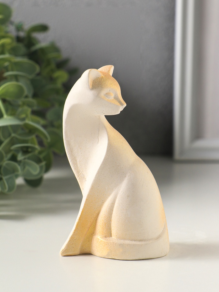 Статуэтка "Кошечка геометрия" высота 10,5 см, цвет белый с позолотой
