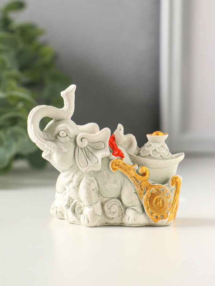 Статуэтка "Слон с богатством" размер 6х8х3 см, цвет белый с росписью