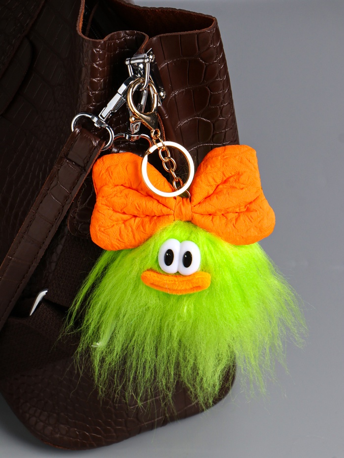 Пушистик на кольце "Чучундра с бантиком" салатовая 18х10х5 см