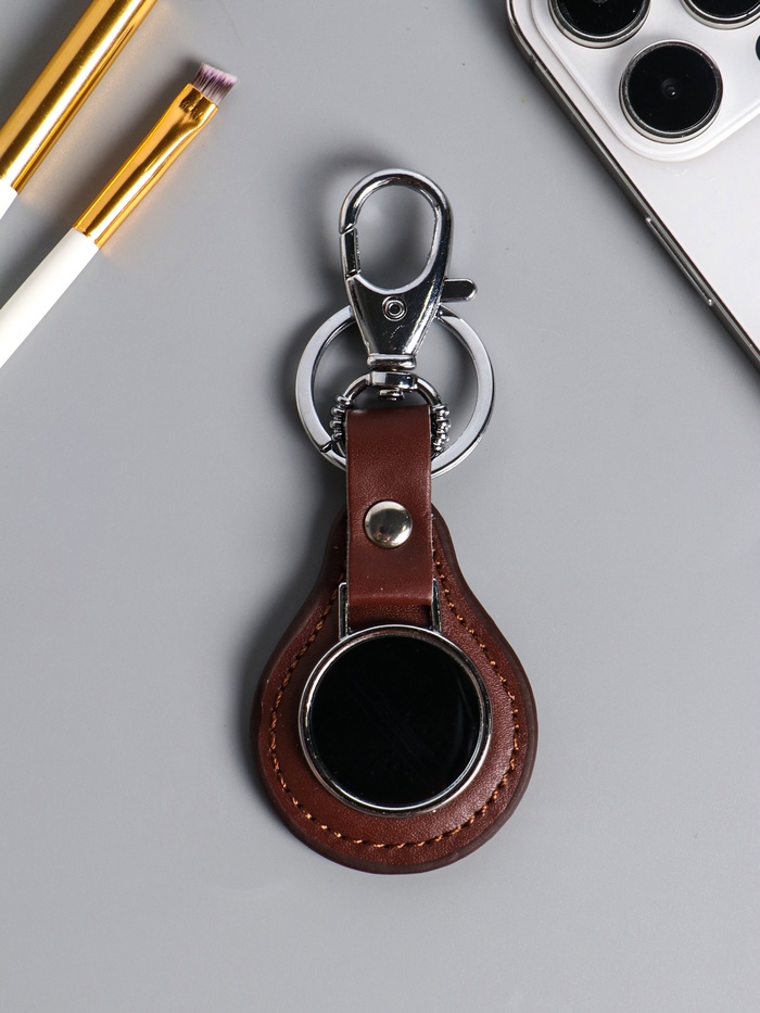 Брелок под нанесение кожзам, металл "Жетон" размер окна d=2,7 см, коричневый 11х4,5х0,7 см 1090438