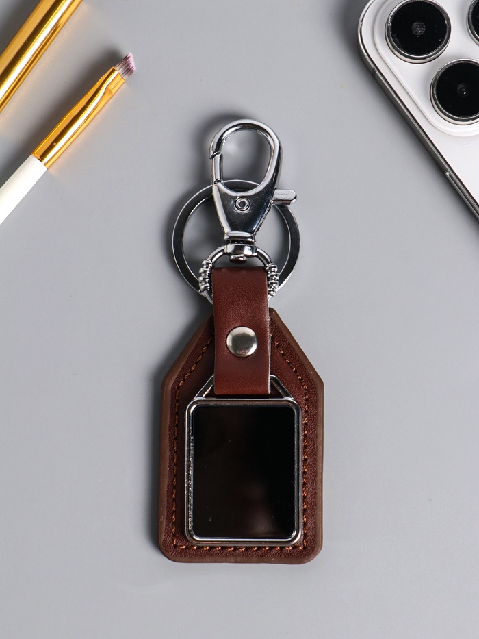 Брелок под нанесение кожзам, металл "Бейдж" размер окна 3,2х2,5 см, коричневый 11х4х0,7 см 1090438