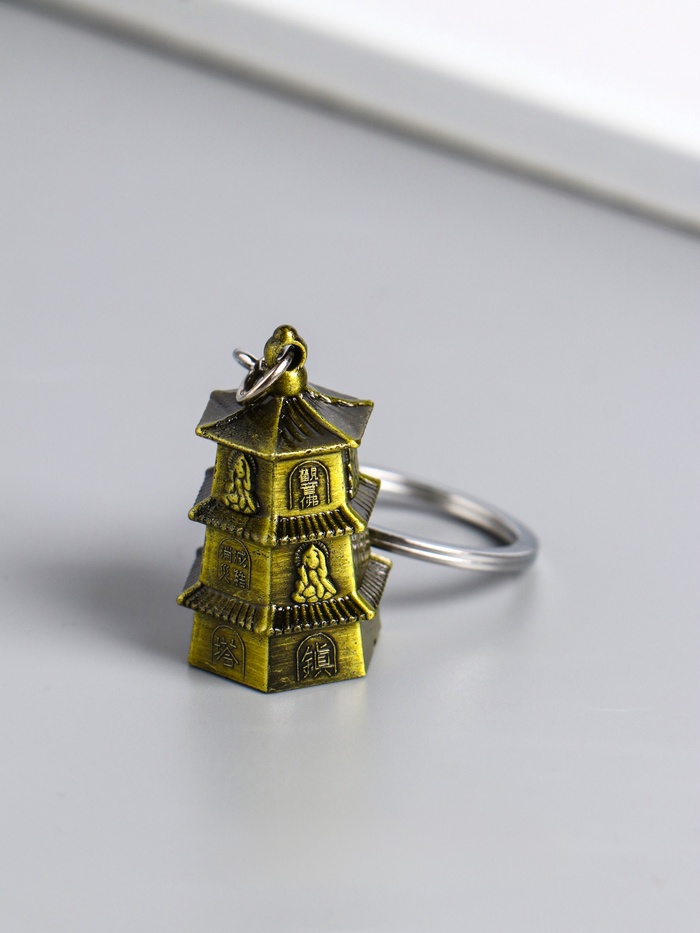 Брелок металл нэцке "Пагода 3 яруса"бронза 3,8х2,5х2,2 см