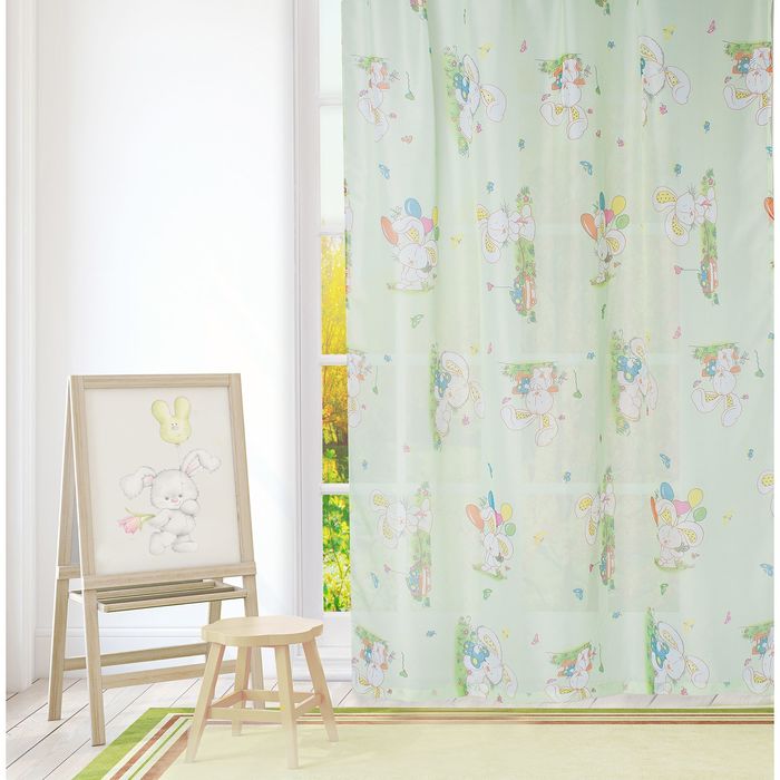 Тюль "Этель" 135х270 см Весёлый зайчик без утяжелителя, 100% п/э