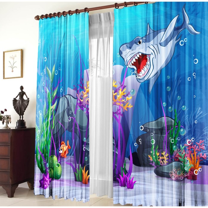 Комплект штор «На дне», 147×267 ±3 см - 2 шт., габардин, синие