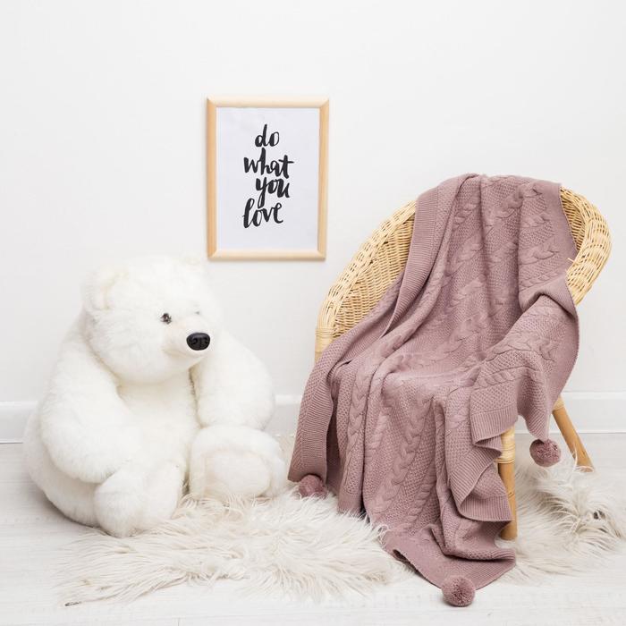 Вязаный плед "Крошка Я" Рисунок косичка, 90х90 см, коричневый