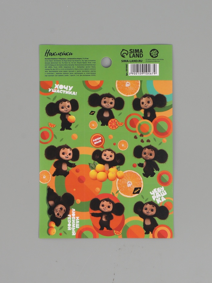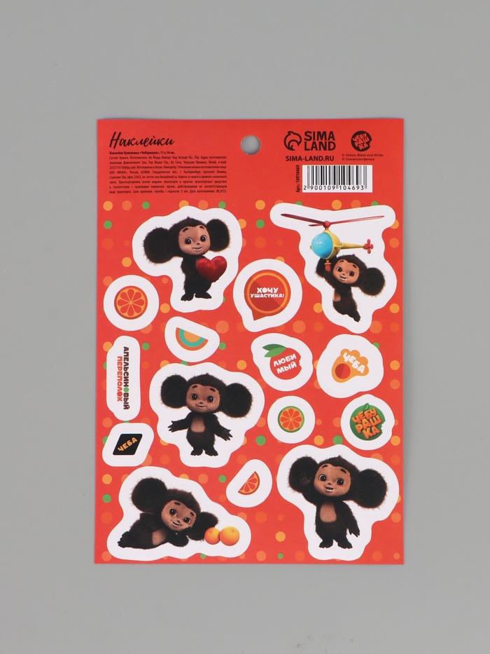 Наклейки бумажные «Чебурашка»,11 × 15,5 см