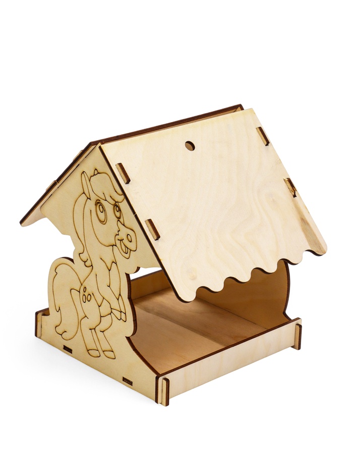 Кормушка для птиц дерево 18 x 16 x 15 см, Разобранная. "Лошадь" Символ Года