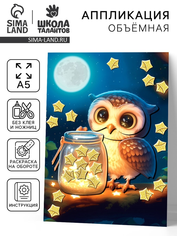 Аппликация объемная со звездочками оригами «Милая совушка», набор для творчества