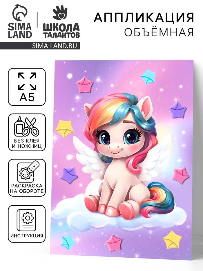 Аппликация объемная со звездочками оригами «Сказочный единорог», набор для творчества