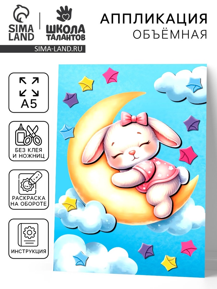 Аппликация объемная со звездочками оригами «Зайка на облаке», набор для творчества