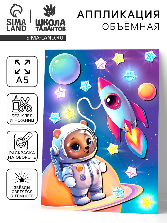 Аппликация объемная со звездочками оригами «Мишка в космосе», набор для творчества