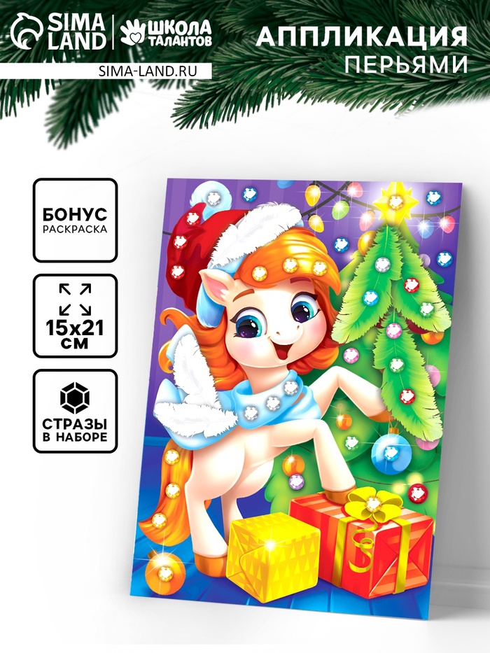 Аппликация перьями и стразами «Лошадка»
