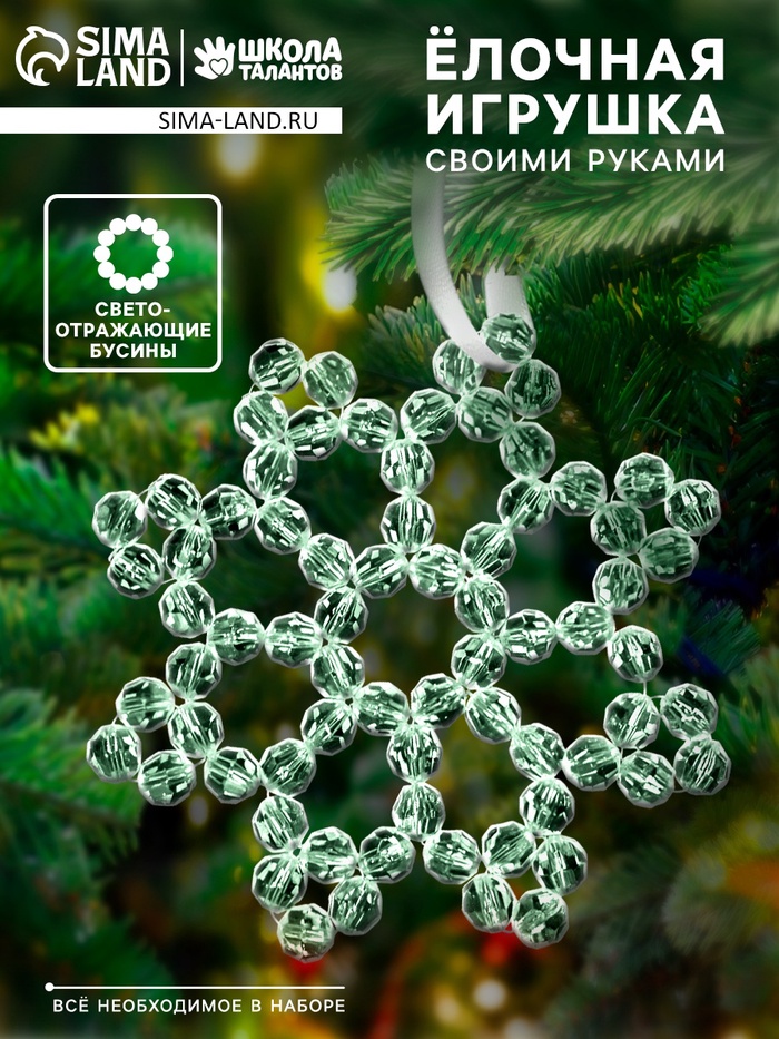 Набор для творчества «Снежинка на ёлку» из прозрачных светоотражающих бусин