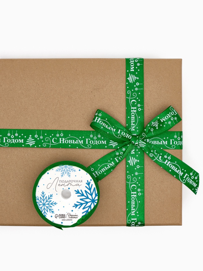 Лента атласная «С Новым годом!», зеленая, 2 см × 5 м