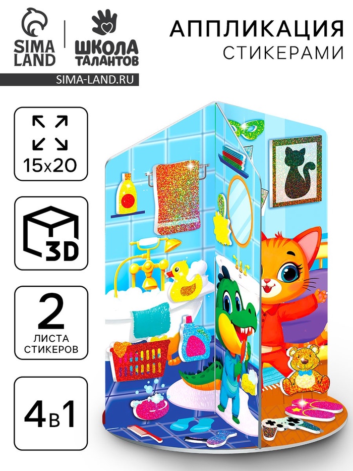Книжка «Аппликации наклейками.Весёлые зверята», 12 стр., А5, Синий трактор