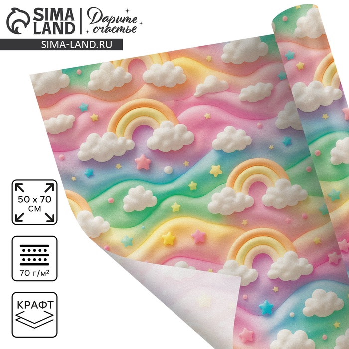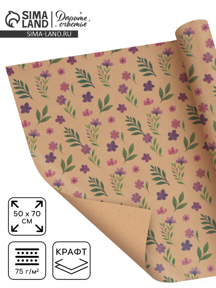 Бумага упаковочная крафт, пастель нежная, 0.68×10 ±5% м