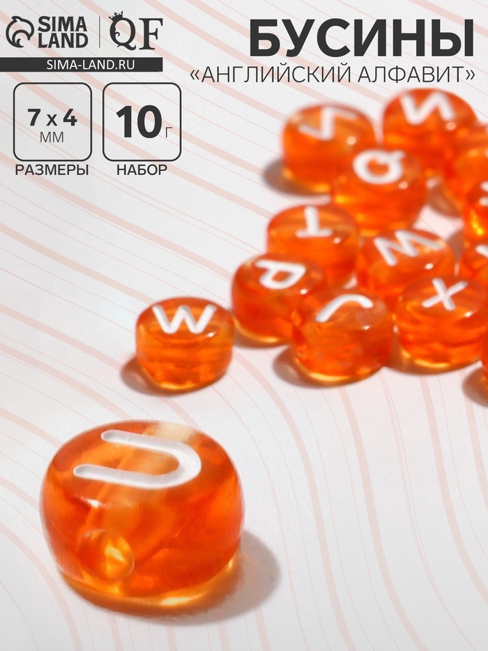 Бусины для творчества из акрила «Английский алфавит», МИКС, 7×4 мм, набор 10 г, прозрачно-оранжевые