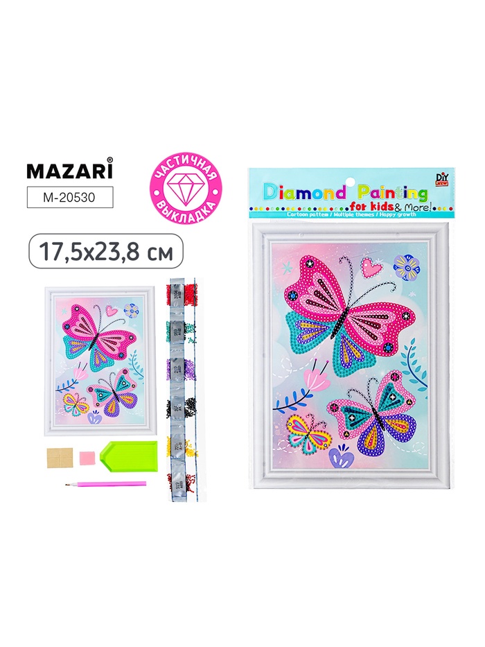 Алмазная мозаика "Бабочки", картонная основа 17.5х23.8 см, частичная выкладка