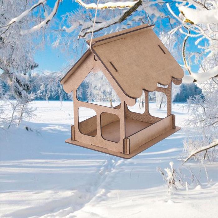 Кормушка - конструктор из ХДФ для птиц «Домик», своими руками, 16.5×12.5×19.5 см, Greengo