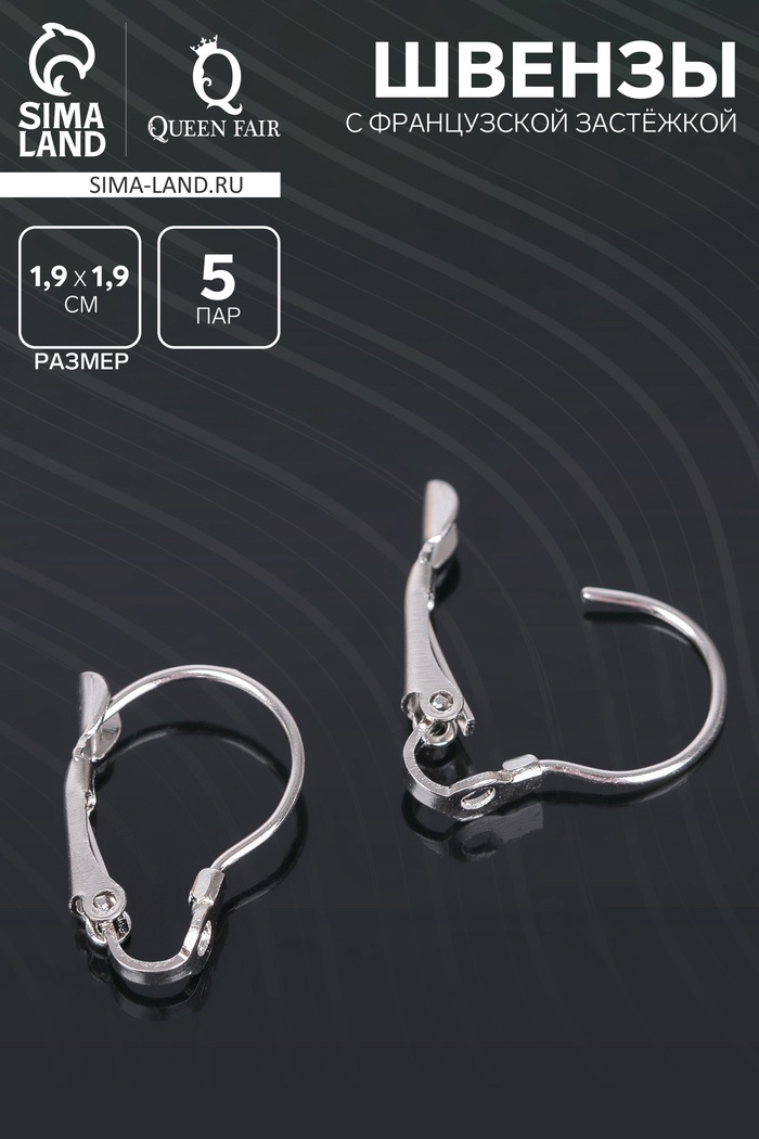 Швензы с французской застёжкой, цвет серебро, 19 мм (набор 5 пар)