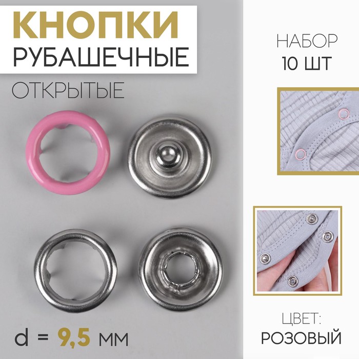 Кнопки рубашечные, d = 9,5 мм, 10 шт, цвет розовый