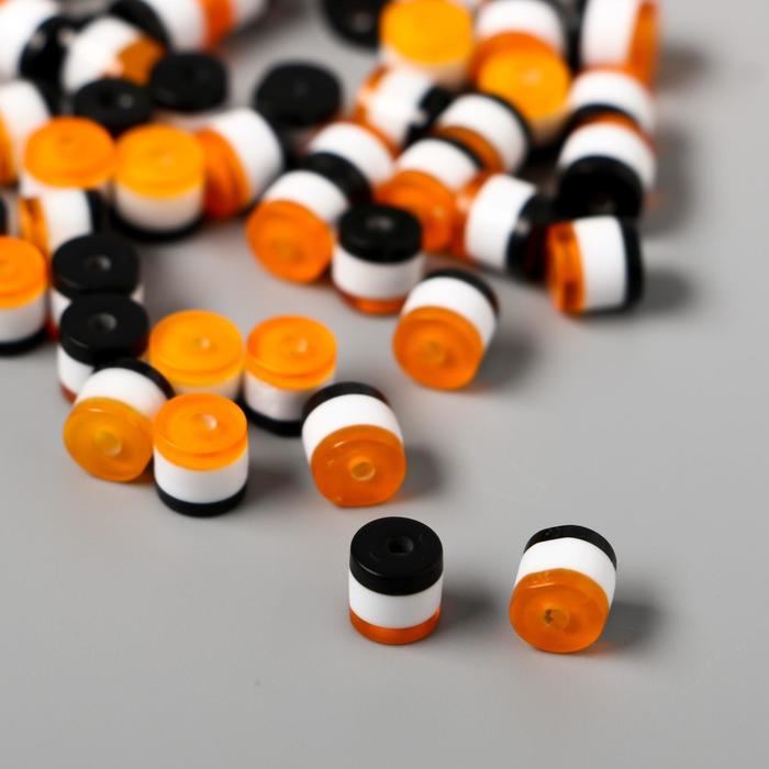 Бусины для творчества пластик "Цилиндр чёрно-рыжий-белый" набор 10 г, 0,6х0,55х0,55 см