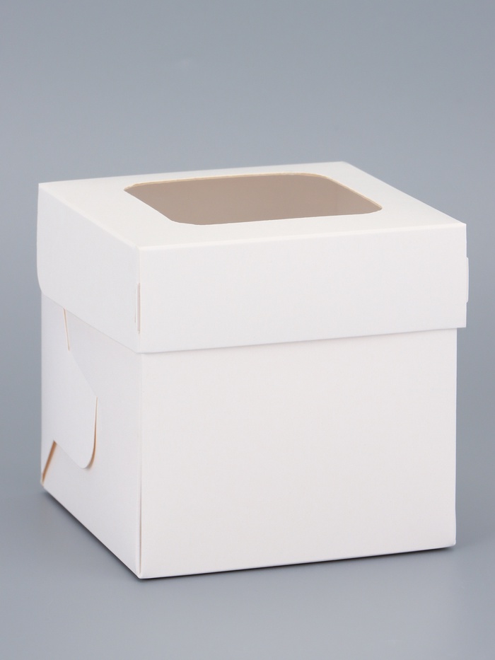 Коробка под бенто-торт с окном, белая, 14 х 14 х 8 см