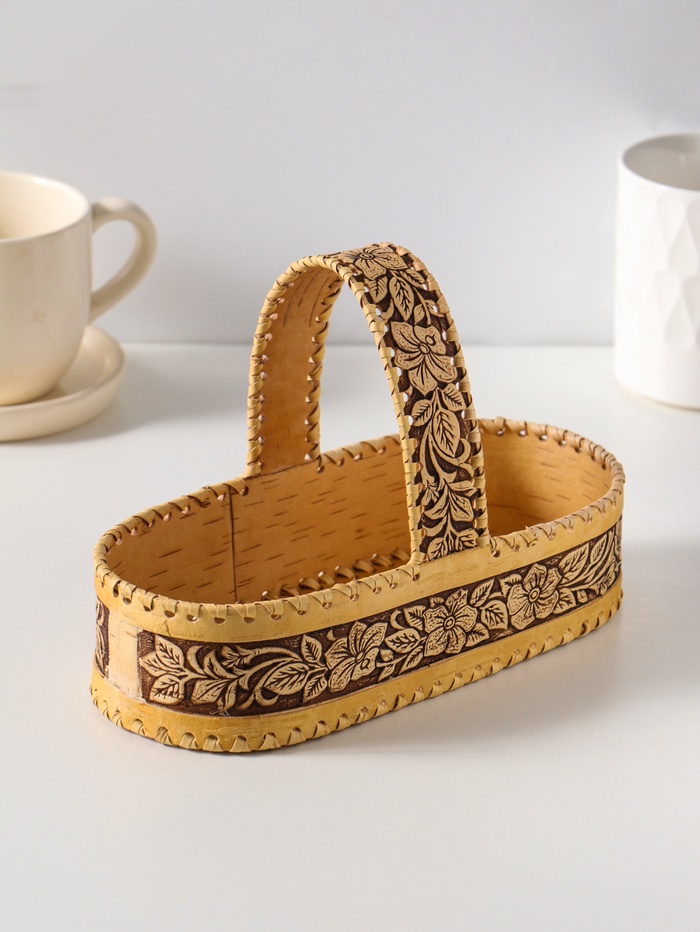 Конфетница - корзинка овальная «Цветочки», 21×10×13.5 см, береста