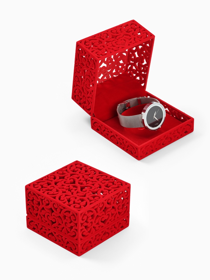 Футляр бархатный под браслет "Куб резной", 10*10*6,5, цвет красный, вставка красная